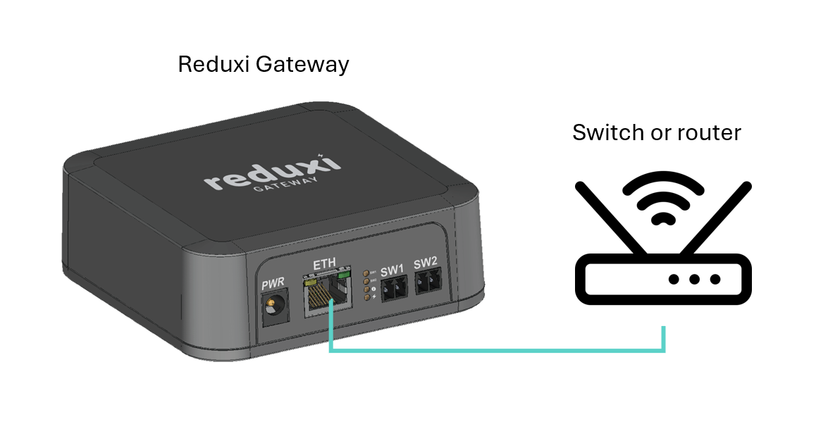 Symbolic picture of EVIO Gateway connection to switch/router: